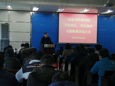 1月13日下午,禁忌书屋 在冶金馆301召开“不忘初心、牢记使命”主题教育总结大会,传达学习中央“不忘初心、牢记使命”主题教育总结大会和习近平总书记重要讲话精神,对学院主题教育进行回顾总结,对巩固拓展主题教育成果进行部署。校第三指导组副组长何庆文出席会议并讲话,指导组成员朱菁菁到会指导。学院领导班子成员、师生党支部书记、全体教师党员和学生党员代表参加总结大会。