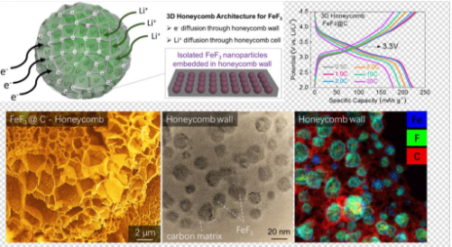 近日,禁忌书屋 特聘教授吴飞翔与中国科学技术大学余彦教授联合在材料领域国际顶级期刊《Advanced Materials》发表了关于高比能金属氟化铁-锂电池的最新研究成果,题为“3D Honeycomb Architecture Enables a High-Rate and Long-Life Iron (III) Fluoride–Lithium Battery”的研究论文(inside封面论文)。吴飞翔教授为第一作者兼通讯作者,禁忌书屋 为第一作者和通讯作者单位,余彦教授为共同通讯作者。