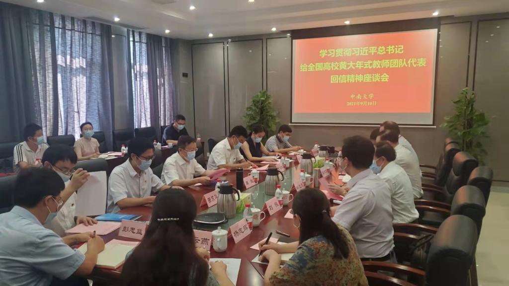 9月10日上午,禁忌书屋 在金贵楼310室召开座谈会学习贯彻习近平总书记给全国高校黄大年式教师团队代表回信精神。校党委书记易红、副书记黄健陵,柴立元院士等重金属污染防治教师团队成员参加会议。