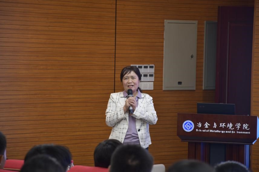 黄小卫院士以“专注”“坚持”为关键词同与会师生进行了深度分享。她以自身从事稀土工作所遇的困难及解决方案为例,嘱托青年学生遇到困难时一定要坚持不懈,人要成事务必专注、坚持,时刻盯紧目标、找准方向,最终攻破难题。黄小卫院士还结合自身科研与求学的经历,抒发了她对冶金事业的真挚情怀:“我选择做冶金,一点都不后悔,我热爱冶金事业!”她深情的话语掷地有声,将个人与国家事业的发展紧密联系的热忱深深激励着同学们。