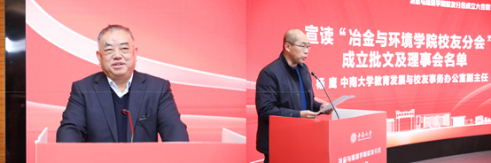 学院院长闵小波宣读了“赵天从冶金教育发展基金”倡议书,向全体校友和各界友好人士发起捐赠倡议。