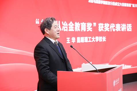 学院党委书记成琼文宣读首届“赵天从冶金教育奖”获奖名单,到场的领导与嘉宾为获奖师生颁奖,获奖代表昆明理工大学校长王华讲话,他感谢中南冶金人对他的肯定,并期待以后两个高校能够加强合作与交流。