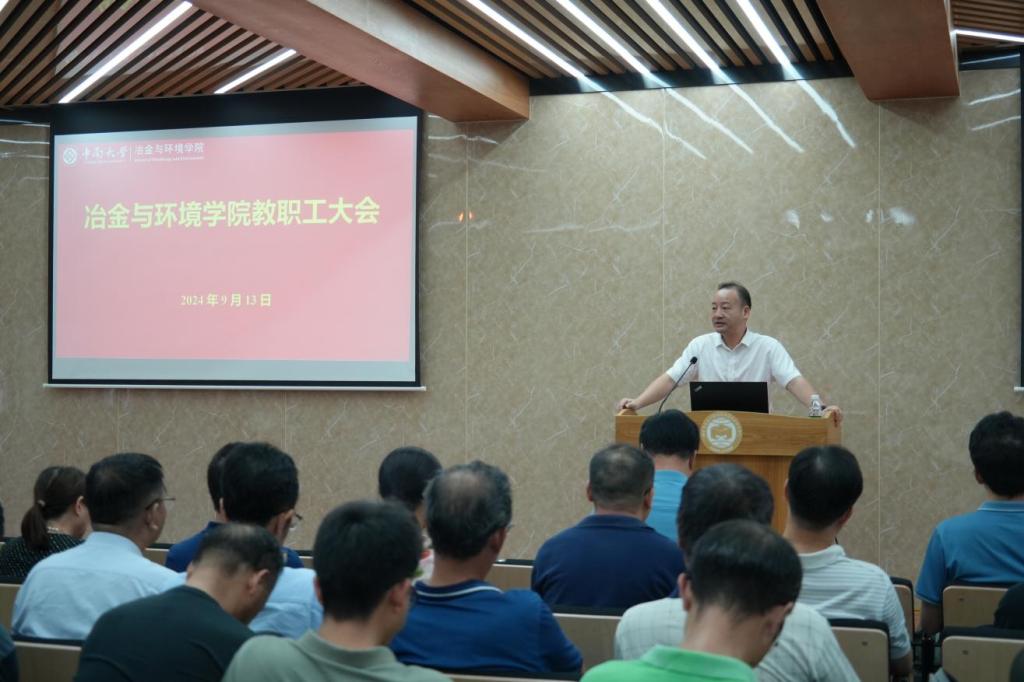 最后,闵小波院长进行了总结发言,他充分肯定了学院上学期的工作,并期望在新学期全院师生继续传承发扬学院良好院风,营造风清气正、积极向上的教学、科研环境;合力保持冶金工程学科发展优势,积极推动环境、新能源学科的协同发展,加大高层次人才引进力度,进一步改善实验室环境,努力建设国际化、标准化实验室,全面提升教学质量,提升专业人才培养质量;要聚焦国家重大战略需求,紧密对接企业实际需求与市场导向,开展高质量科学研究,为国家发展和社会进步贡献中南智慧和力量。