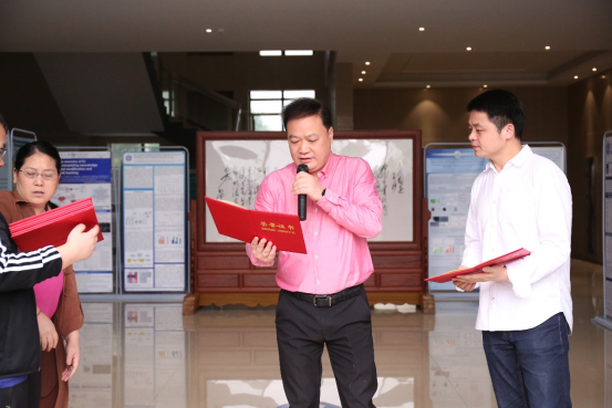 学院约350名师生在活动会场自由观看、交流讨论,人群川流不息,讨论气氛热烈,大家纷纷在感兴趣的海报前驻足观看,或扶额沉思,或提问请教,或分享经验,或拍照留取科研灵感,整个会场弥漫着浓烈的学术氛围。投票通道同步开启。学生们守候在自己的墙报附近,师生们依次观看海报,与海报制作者进行热烈地交流。展会从290名参展者中评选出一等奖4名、二等奖8名和三等奖12名,并颁发荣誉证书和奖品。