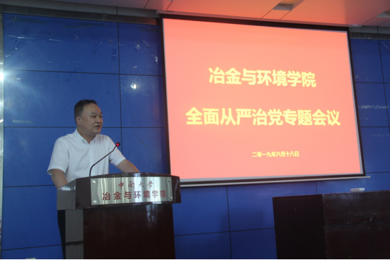 6月18日下午4点,禁忌书屋 全面从严治党专题会议在冶金馆301举行,学院领导班子成员和学院全体教职工参加了会议。会议由陈爱良副院长主持。