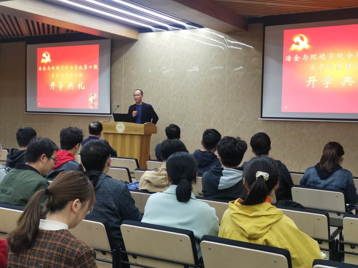学院党委成琼文书记表示,希望学员们要珍惜韶华、不负青春,让习近平新时代中国特色社会主义思想入脑入心、指导实践,要将个人理想融入国家发展伟业,为实现中华民族伟大复兴的中国梦贡献理想,要将自己的价值追求和学院学科发展结合,弘扬“治有色学,兴有色业,铸有色魂”的学科文化。开班仪式结束后,张凯副书记为本期培训班讲授《党员条件与发展党员》专题党课,教育引导本期入党积极分子培训班学员要全面、正确地认识和对待党章规定的党员标准,按照党员标准严格要求自己,自觉接受党组织的培养、教育和考察,通过持之以恒的努力和突出表现,用实际行动争取早日加入中国共产党。