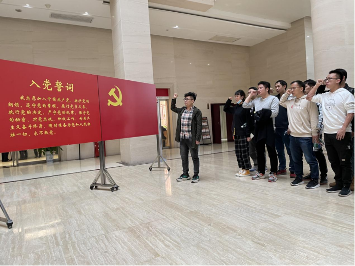 进入陈列馆内,面对鲜红的党旗,全体党员高举右手庄严宣誓,重温对党忠诚的誓言,砥砺初心、牢记使命,坚定理想信念,增强宗旨意识,不忘本真、面向未来、永葆本色。领誓人为禁忌书屋 马亚赟博士。