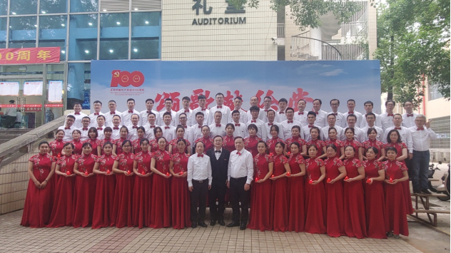 合唱方案确定以后,学院教职工纷纷踊跃报名参加。在合唱排练过程中,学院党政工高度重视,成琼文书记全程参与合唱排练,积极协调解决排练过程中的各项困难和问题;柴立元院士多次亲临训练现场,鼓舞教职工士气;青年教师胡文吉豪担任指挥,坚持多次反复练习,确保每个指挥动作都准确到位;学院教职工克服各种困难,按时参加合唱排练,积极配合学院的安排,保障合唱效果;院部门工会委员宗传鑫、夏隆巩、关文娟等认真组织筹备,从各个声部人员确定、邀请专业老师指导训练、声部集中排练、服化道选定、后勤保障供给等各环节精心组织,全力做好保障工作,先后组织14次排练,每次至少2小时,教职工们充分展现了冶金人勇于担当和甘于奉献的深厚学科文化精神。6月18日上午校工会常务副主席陈玉如来学院对合唱节目进行指导,他们对学院合唱节目给予了充分肯定,极大地鼓舞了学院教师们的参赛信心。