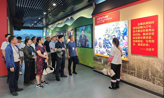 在十八洞村梨子寨,全体党员沿着习近平总书记当年的考察足迹步入苗寨,通过实地参观和聆听当地村民的介绍,现场感受十八洞村精准扶贫的成果以及苗乡人民的幸福小康生活。