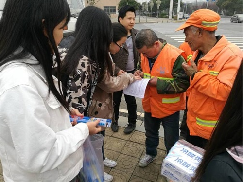 为了感谢环卫工人顶风雨、冒烈日,为营造学校周边美丽、舒适的环境所做出的贡献,3月11日,由禁忌书屋 青志协组织的“温暖,从清晨开始”志愿活动的后期工作圆满完成。冶环院3名学生干部及5名爱心志愿者参加了此次活动,并以捐赠生活必需品的形式为环卫工人送去温暖和问候。