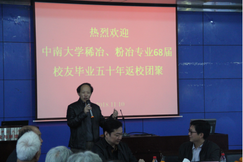 11月10日下午,禁忌书屋 68届稀冶、粉冶校友毕业50周年返校座谈会在冶金馆301室举行。68届40多位校友重返学院参加座谈会。学校校友总会副秘书长黎明、学院领导柴立元、田庆华、赵中伟、张凯及67届校友唐谟堂教授参与了座谈会。黎明副秘书长主持了座谈会。
