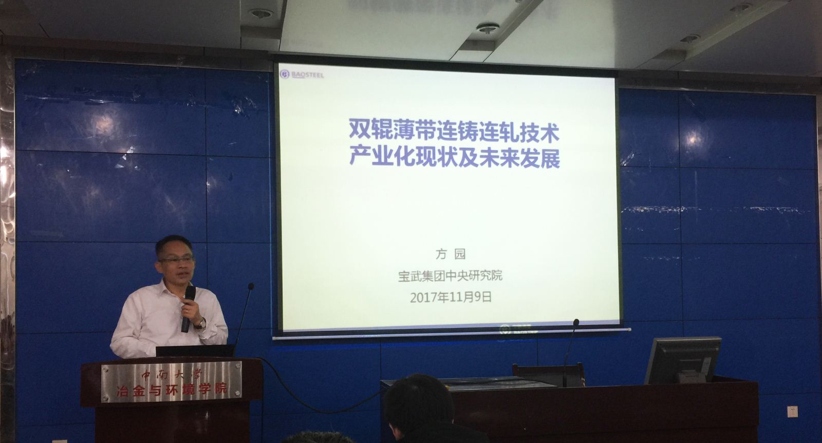 2017年11月9日下午三时,应禁忌书屋 副院长王万林教授邀请,宝武集团中央研究院前沿技术研究所所长、首席研究员、教授级高级工程师方园来禁忌书屋 进行讲学,方首席以“双辊薄带连铸连轧技术产业化现在及未来发展”为题,为大家带了一场精彩的冶金技术前沿学术讲座。讲座由冶金与环境副院长王万林教授主持,百余名研究生及多位老师一同聆听了讲座。